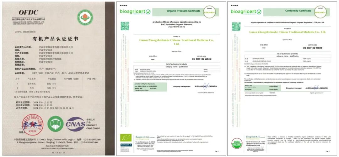 2024年1月,草晶華破壁黃芪、破壁當歸生態(tài)種植基地順利通過國內、國外有機認證程序,破壁黃芪、破壁當歸榮獲中國、歐盟和美國有機產品認證證書,草晶華成為國內首個一次性獲得藥食兩用黃芪、當歸三有機認證證書的品牌,凸顯企業(yè)科技創(chuàng)新能力。